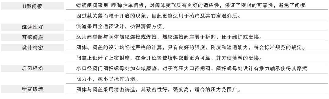 本該系列閘閥分為鑄鋼閘閥和鍛鋼閘閥,設計和制造參考了 ANSI B16.34、API6D標準。閘板分為剛性閘板和彈性閘板兩種,可適用于不同的壓力級。鑄鋼閘閥采用上密封結構,鍛鋼采用閥蓋堆焊上密封的結構。使其維修方便,密封性能好。廣泛應用于油田、化工、水處理等行業。